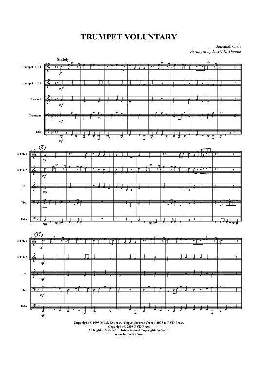 Digital Sheet Music for Processional Music - Score by , Various, David R. Thomas scored for Brass Quintet; id:411890