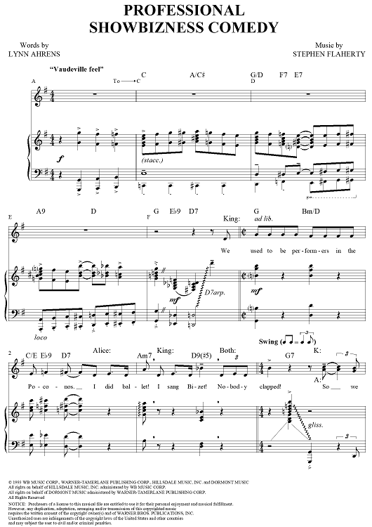 Digital Sheet Music for Professional Showbizness Comedy by Stephen Flaherty, Lynn Ahrens scored for Piano/Vocal/Chords; id:315966