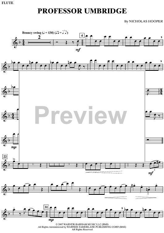 Digital Sheet Music for Professor Umbridge by Nicholas Hooper scored for Flute/Piano; id:498080
