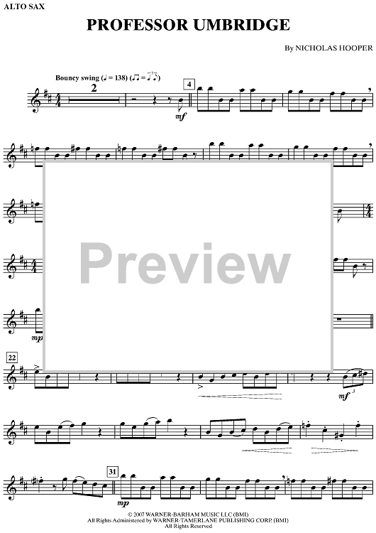 Digital Sheet Music for Professor Umbridge by Nicholas Hooper scored for Alto Sax/Piano; id:498102
