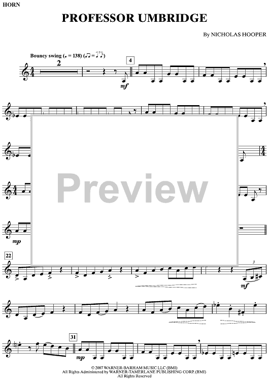 Digital Sheet Music for Professor Umbridge by Nicholas Hooper scored for Horn/Piano; id:498141