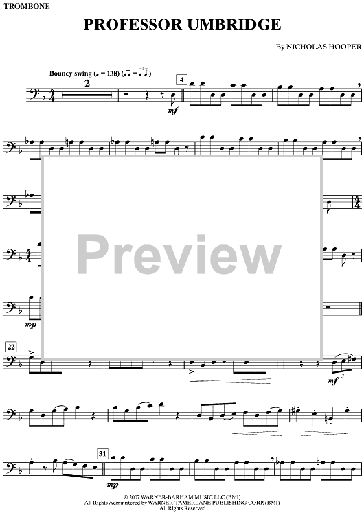 Digital Sheet Music for Professor Umbridge by Nicholas Hooper scored for Trombone/Piano; id:498152