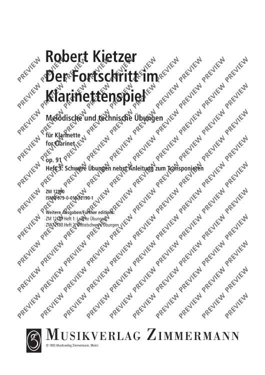 "Progress in Clarinet Playing" Sheet Music by Robert Kietzer