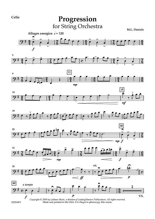Digital Sheet Music for Progression - Cello by , M. L. Daniels scored for String Orchestra; id:458150