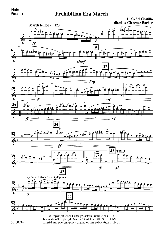 Digital Sheet Music for Prohibition Era March - Flute & Piccolo by Clarence Barber, Lloyd Gould del Castillo scored for Concert Band; id:503839