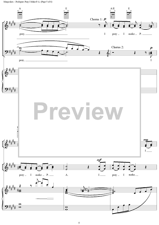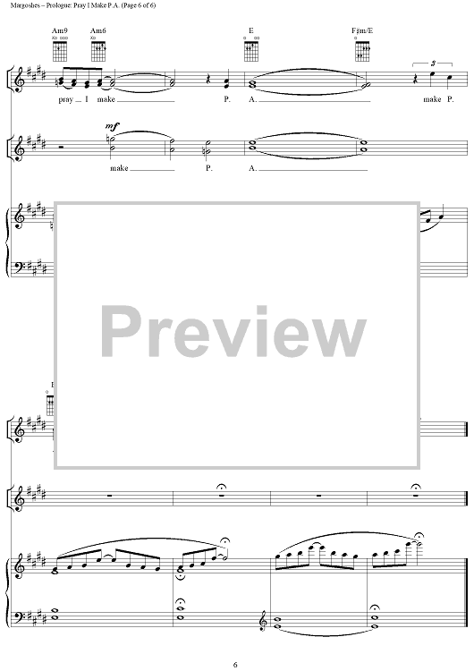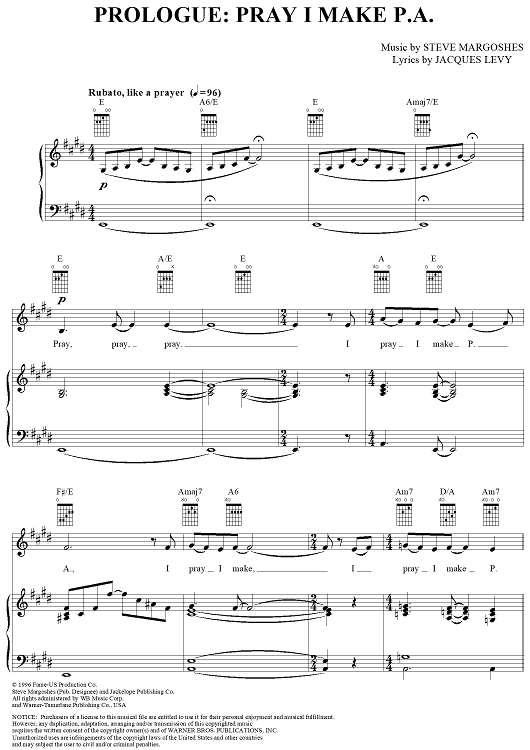 "Prologue: Pray I Make P.A." Sheet Music by Steve Margoshes