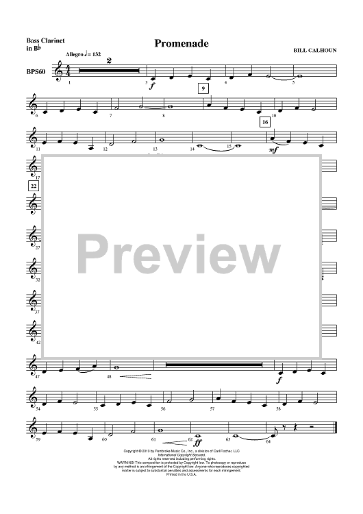 "Promenade - Bass Clarinet in B-flat" Sheet Music by Bill Calhoun