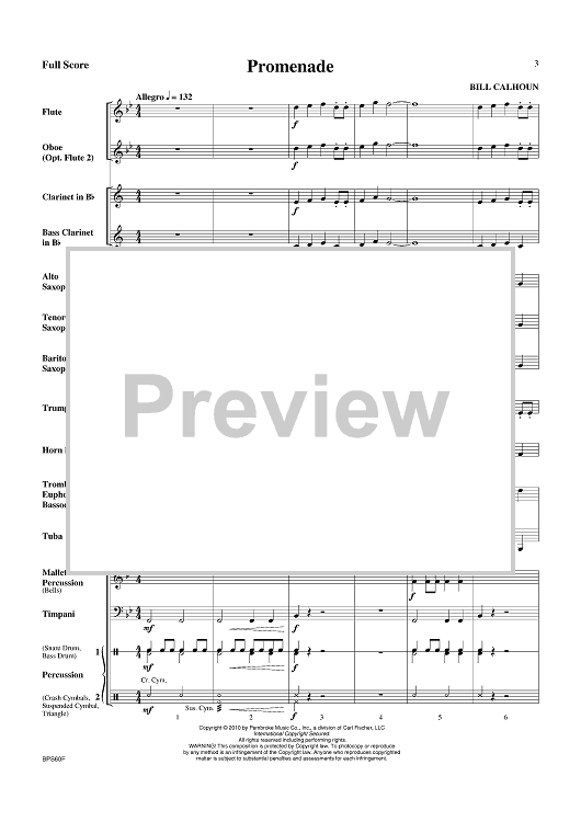 Digital Sheet Music for Promenade - Score by Bill Calhoun scored for Concert Band; id:412145