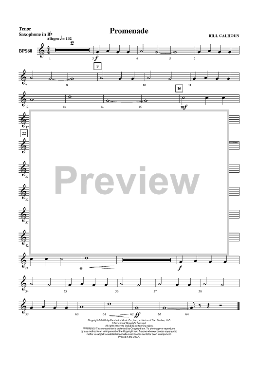 "Promenade - Tenor Sax" Sheet Music by Bill Calhoun