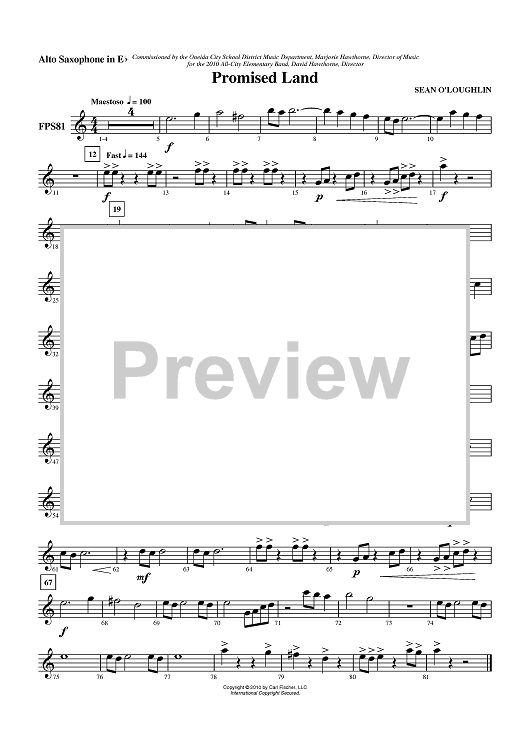 "Promised Land - Alto Sax" Sheet Music by Sean O'Loughlin