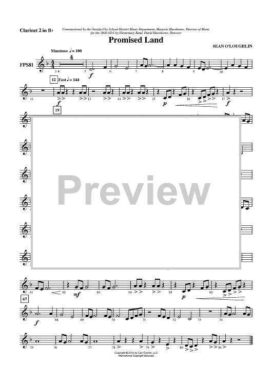 "Promised Land - Clarinet 2 in B-flat" Sheet Music by Sean O'Loughlin