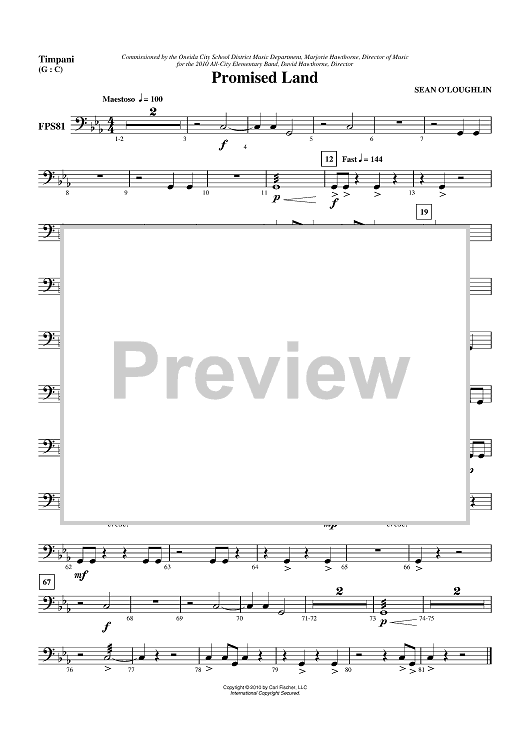 "Promised Land - Timpani" Sheet Music by Sean O'Loughlin