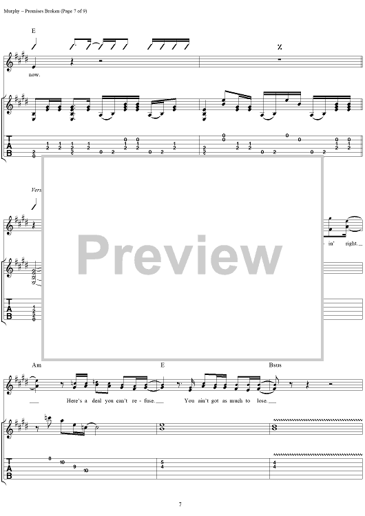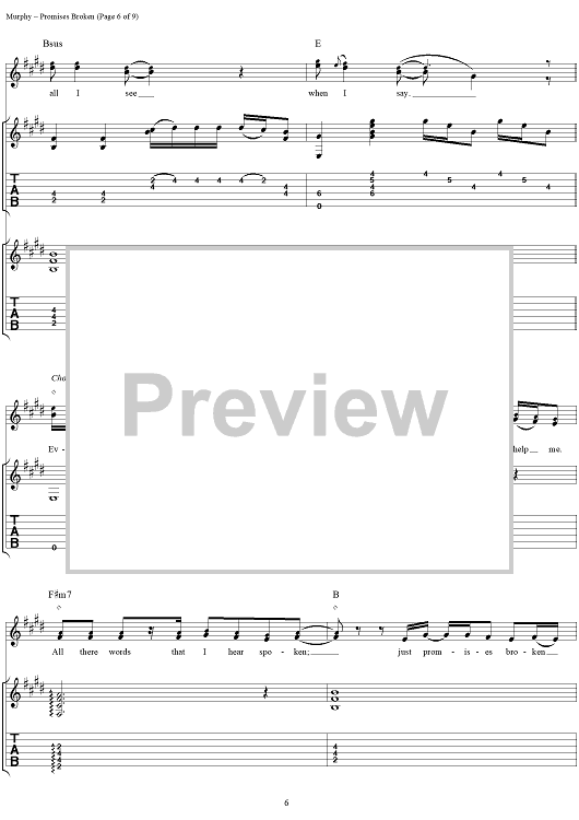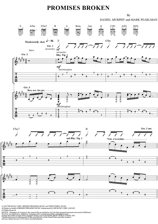 Digital Sheet Music for Promises Broken by Soul Asylum, Daniel Murphy, Mark Pearlman scored for Guitar Tab/Vocal; id:252964