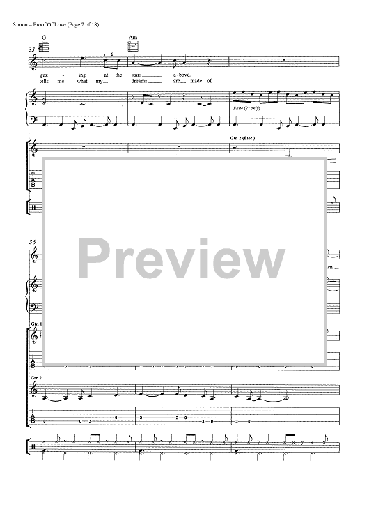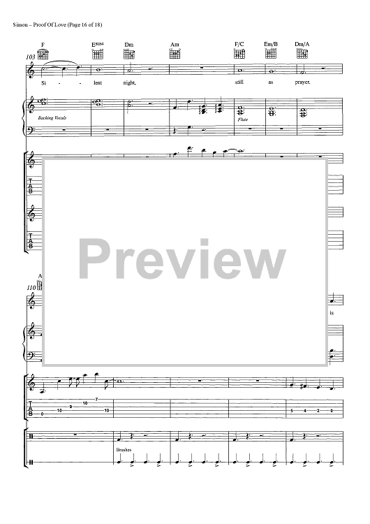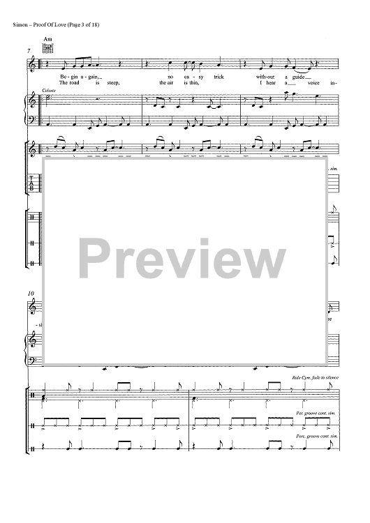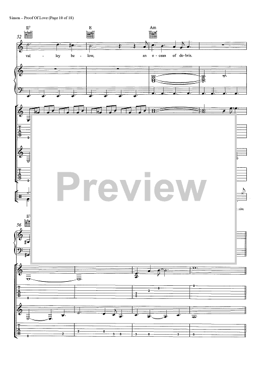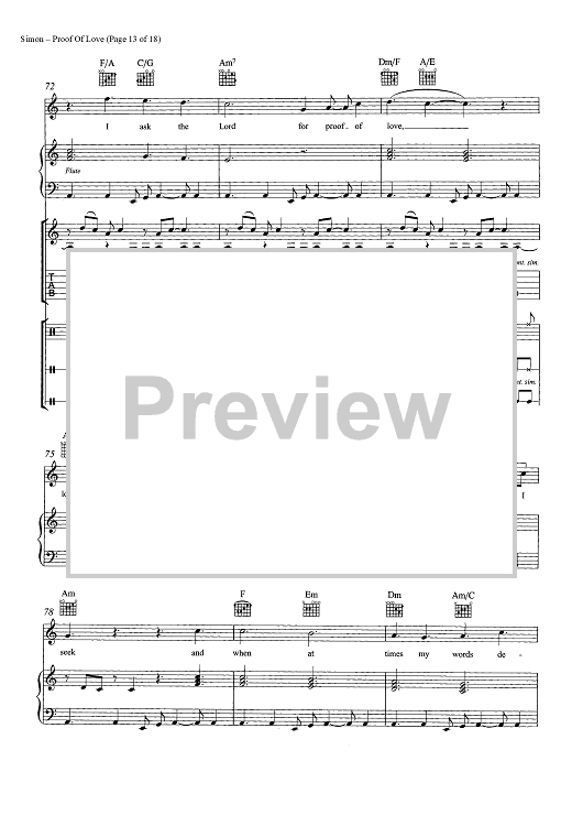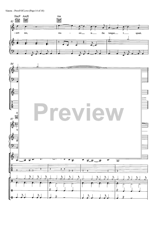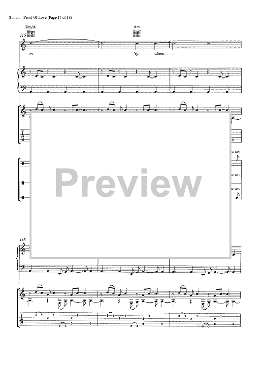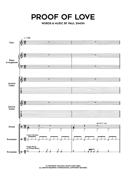 Digital Sheet Music for Proof of Love by Paul Simon scored for Guitar Tab/Piano/Vocal/Chords; id:465543