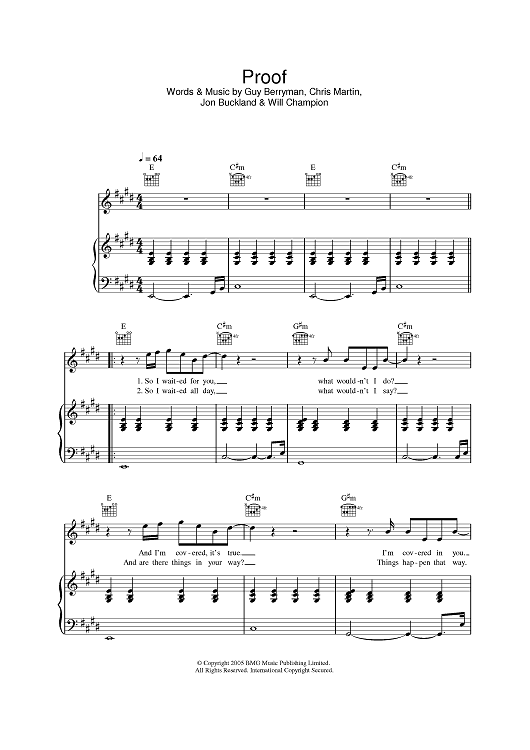 Digital Sheet Music for Proof by Chris Martin, Coldplay, Jonny Buckland, Guy Berryman scored for Piano/Vocal/Chords; id:385160