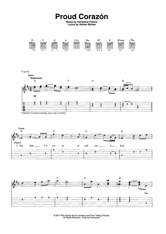 Digital Sheet Music for Proud Corazón - from COCO by Germaine Franco, Adrian Molina scored for Easy Guitar Tab/Vocal; id:466194