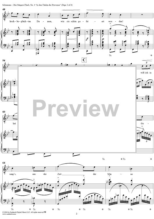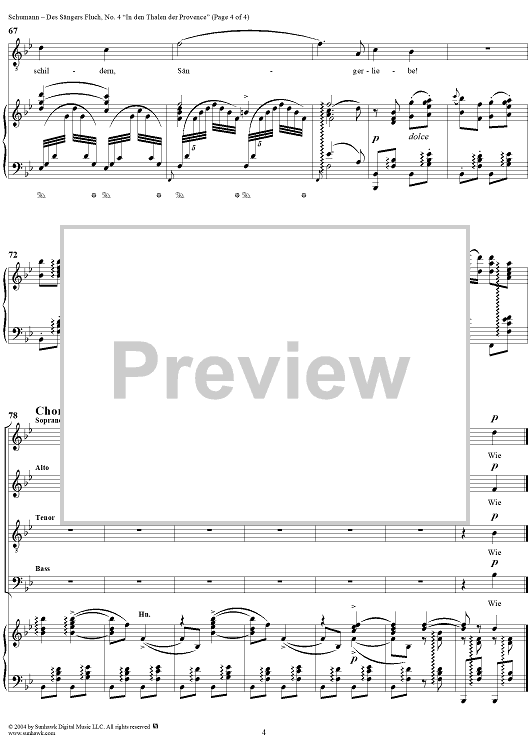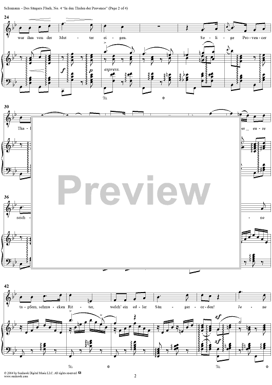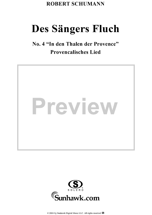 Digital Sheet Music for Provenzalisches Lied: "In den Talen der Provence", No. 4 from "Des Sängers Fluch", Op. 139 by Robert Schumann scored for Voice/Piano; id:305089