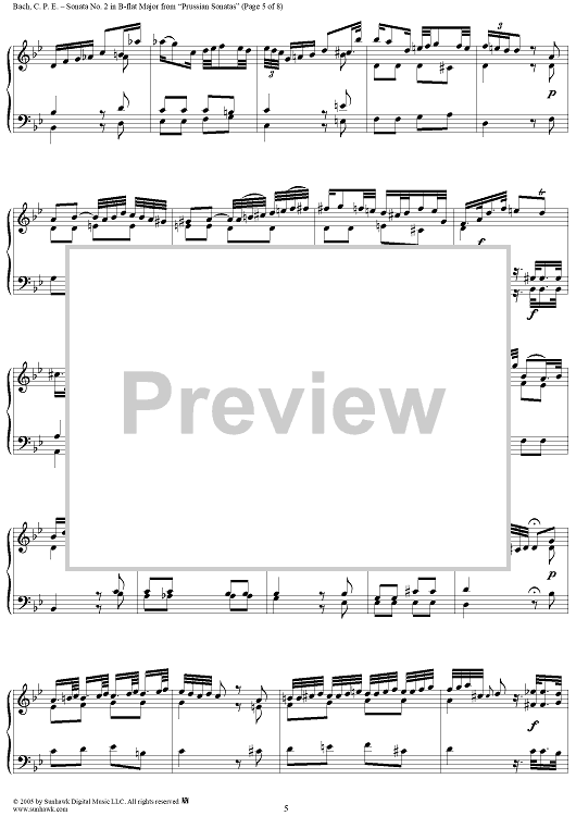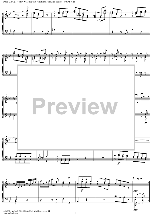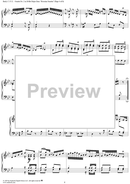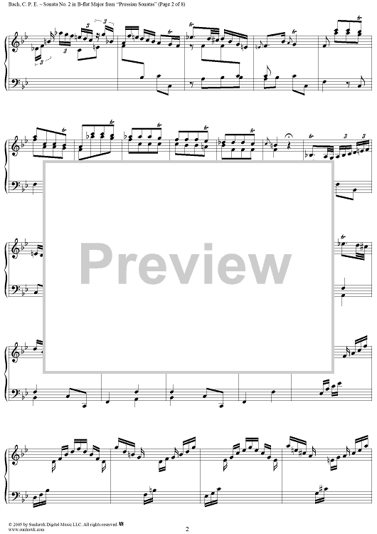 Digital Sheet Music for Prussian Sonatas, No. 2 in B-flat major by Carl Philipp Emanuel Bach scored for Piano Solo; id:312009