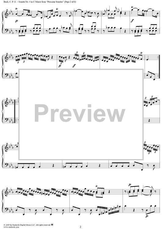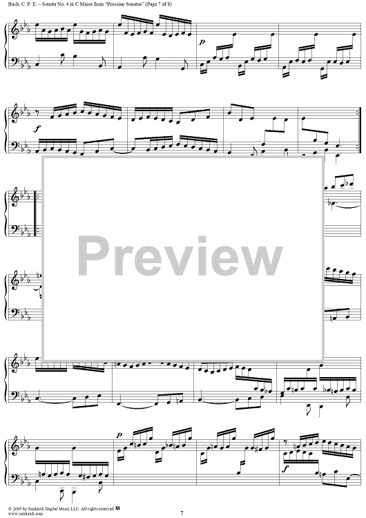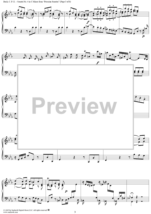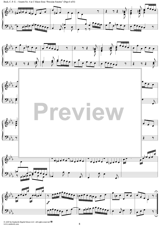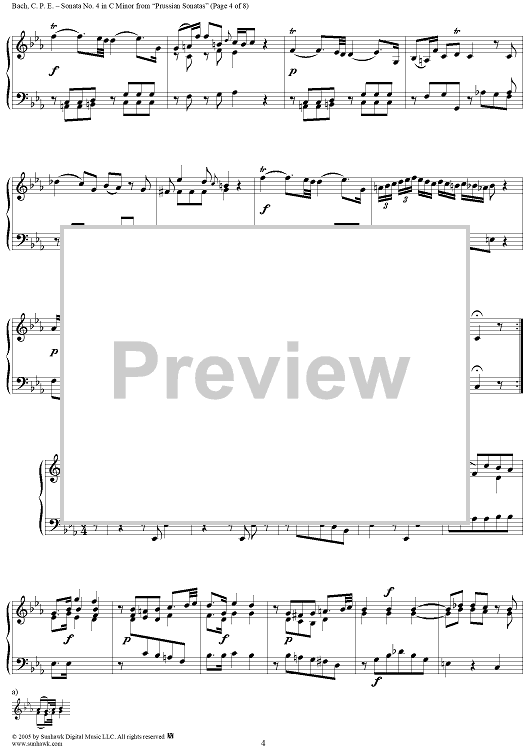 Digital Sheet Music for Prussian Sonatas, No. 4 in C minor by Carl Philipp Emanuel Bach scored for Piano Solo; id:312011