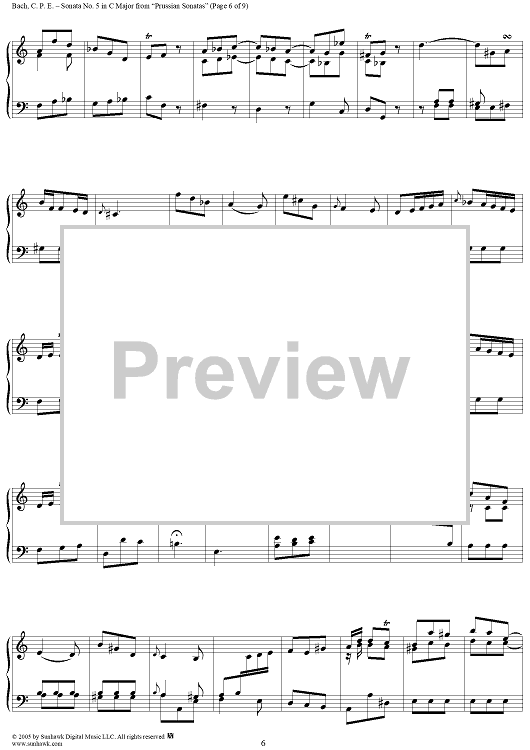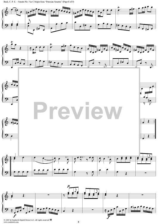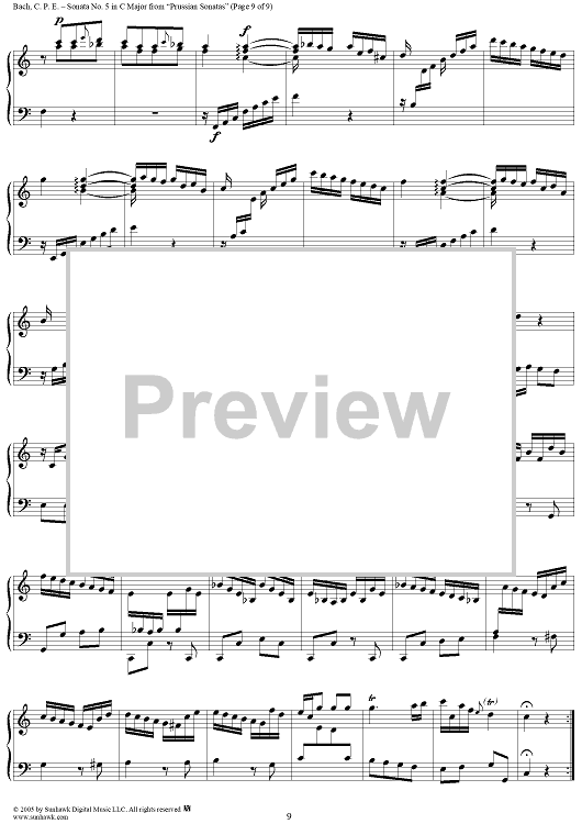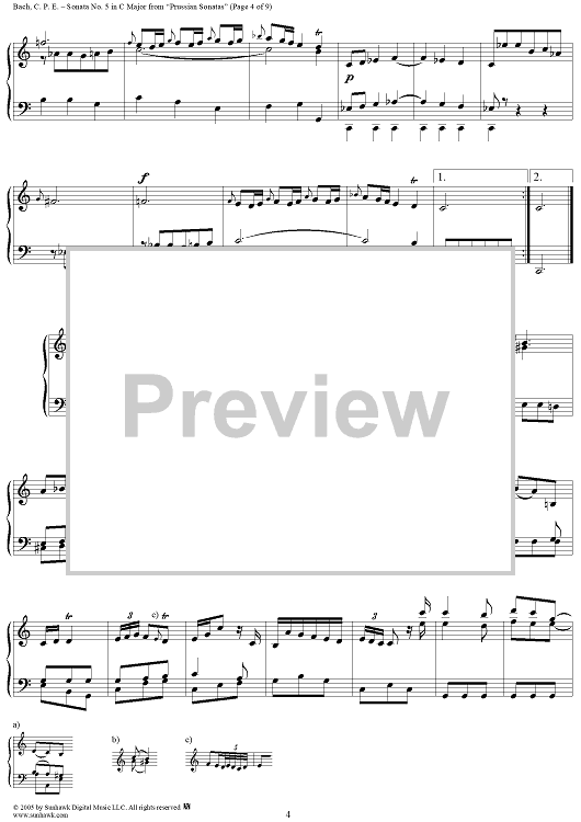 Digital Sheet Music for Prussian Sonatas, No. 5 in C major by Carl Philipp Emanuel Bach scored for Piano Solo; id:312012