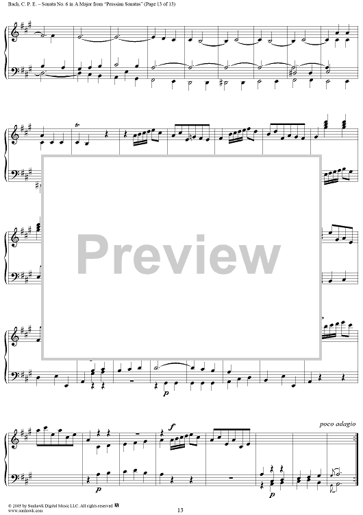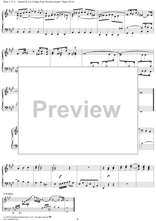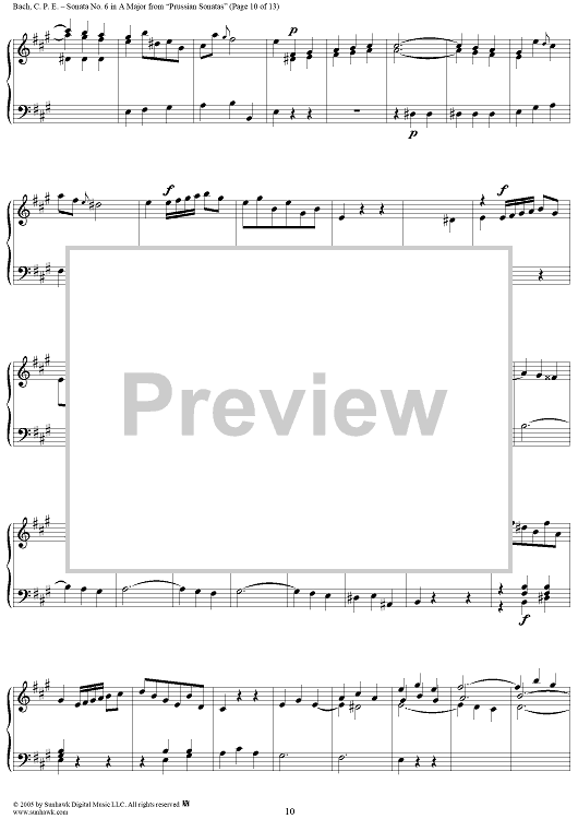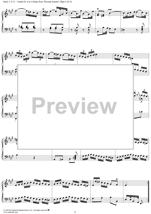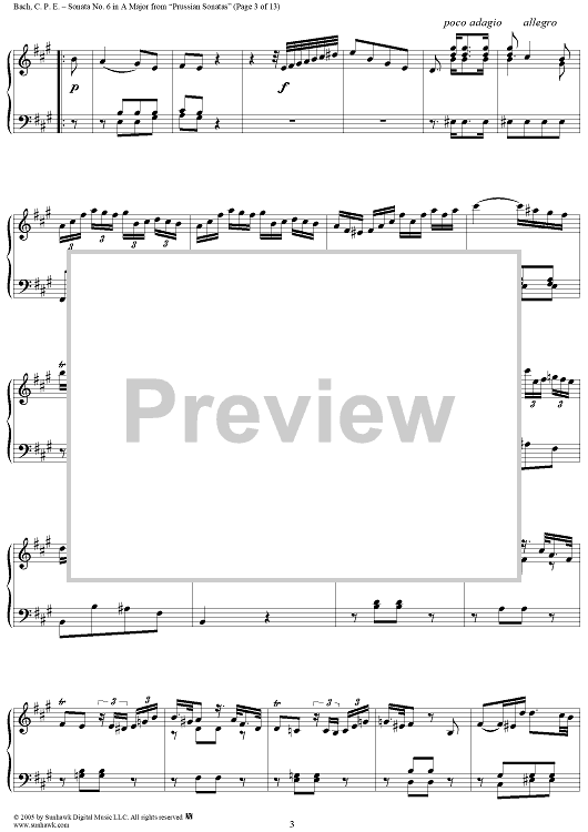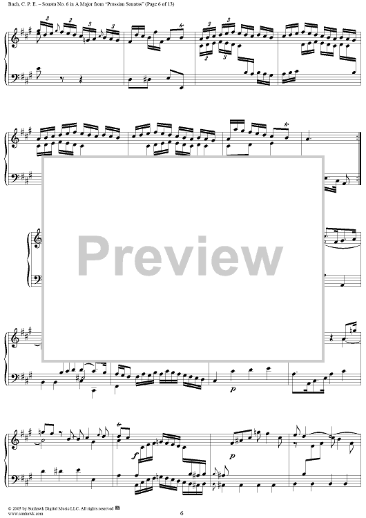 Digital Sheet Music for Prussian Sonatas, No. 6 in A major by Carl Philipp Emanuel Bach scored for Piano Solo; id:312013