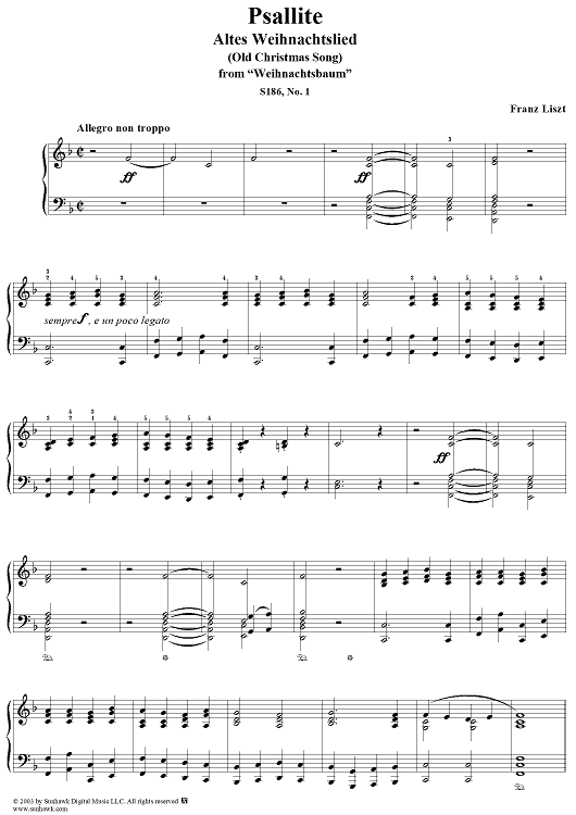 Digital Sheet Music for Psallite, No. 1 from "Weihnachtsbaum", S186 by Franz Liszt scored for Piano Solo; id:294998