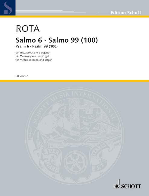 In this setting for mezzo-soprano and organ by Nino Rota, two well-known psalms are published for the first time: psalm 6, 'Domine, ne in furore' ('O Lord, rebuke me not in Thine anger') and psalm 99 (Greek and today's numbering in Catholic bibles) or 100 (original Hebrew and today's numbering in Protestant bibles), 'Jubilate Deo omnis terra' ('O be joyful in the Lord, all ye lands'). This first edition adds another exciting facet to the oeuvre of Nino Rota who achieved worldwide fame as composer of film musics for Fellini, Visconti und Zeffirelli.