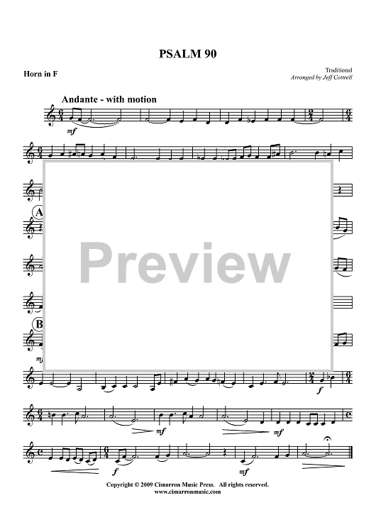 Digital Sheet Music for Psalm 90 - Horn in F by Jeffrey Cottrell, Traditional scored for Brass Quintet; id:417565