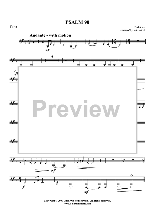 Digital Sheet Music for Psalm 90 - Tuba by Jeffrey Cottrell, Traditional scored for Brass Quintet; id:417567