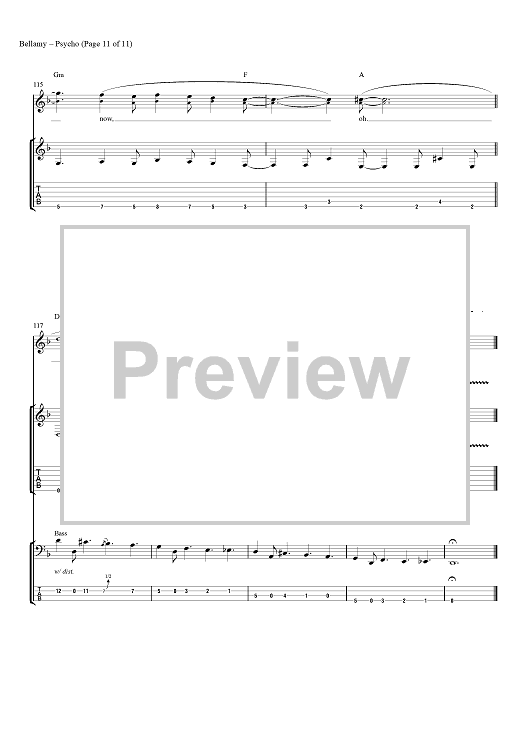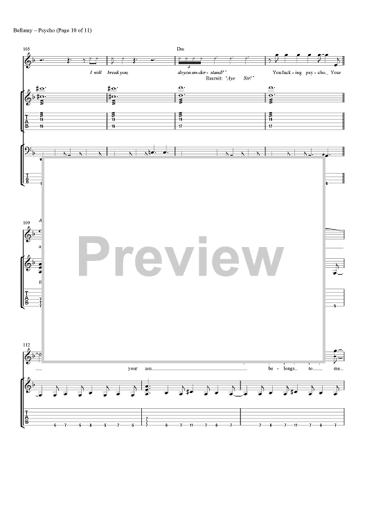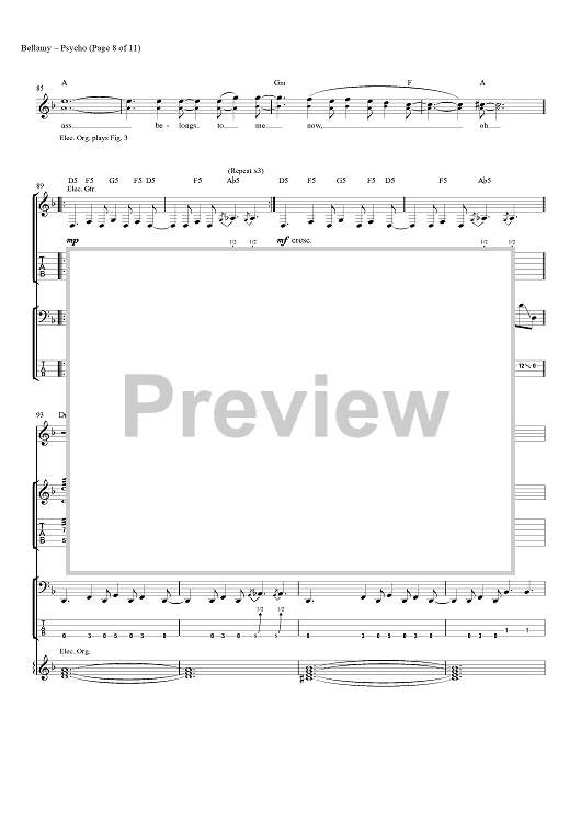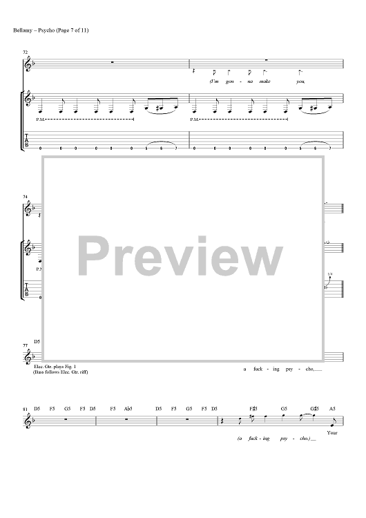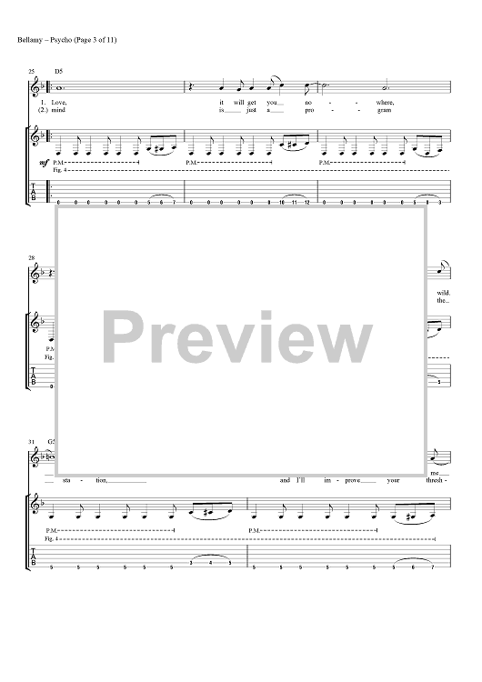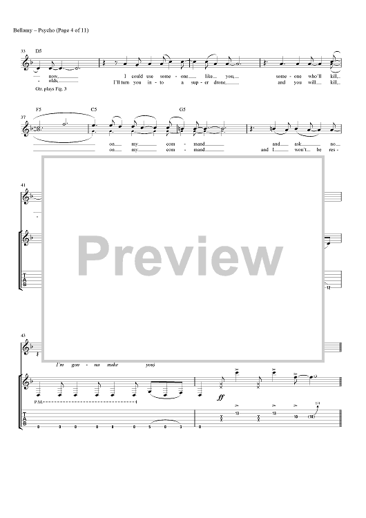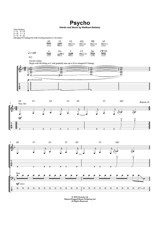 Digital Sheet Music for Psycho by Matthew Bellamy, Muse scored for Guitar Tab; id:453040
