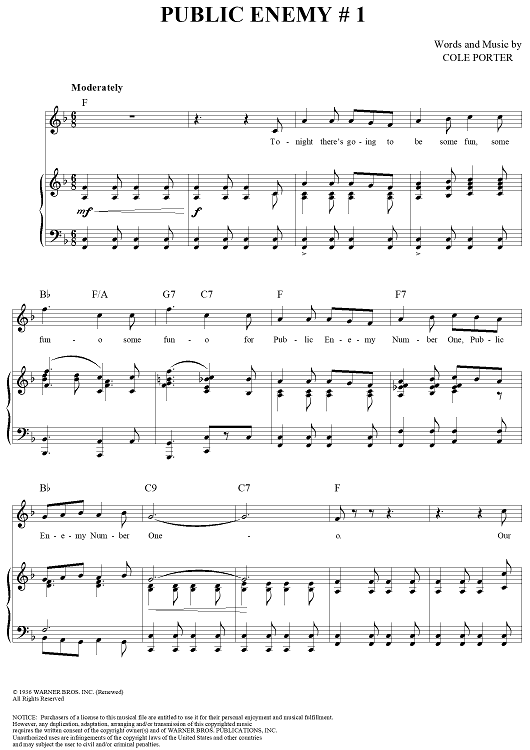 Digital Sheet Music for Public Enemy #1 by Cole Porter scored for Piano/Vocal; id:297871