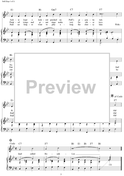 Digital Sheet Music for Puff (The Magic Dragon) by Leonard Lipton, Peter Yarrow, Peter, Paul and Mary scored for Piano/Vocal/Chords; id:113674