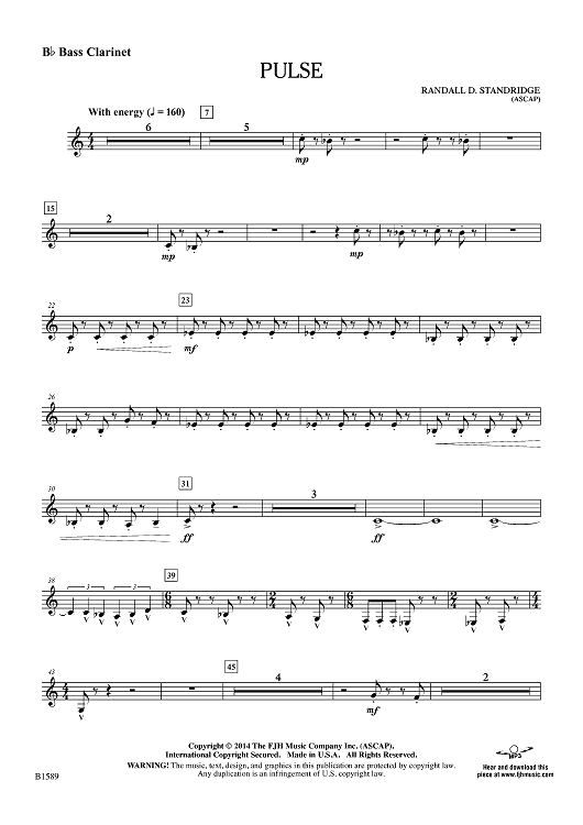 Digital Sheet Music for Pulse - Bb Bass Clarinet by Randall D. Standridge scored for Concert Band; id:445899
