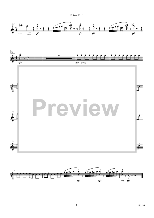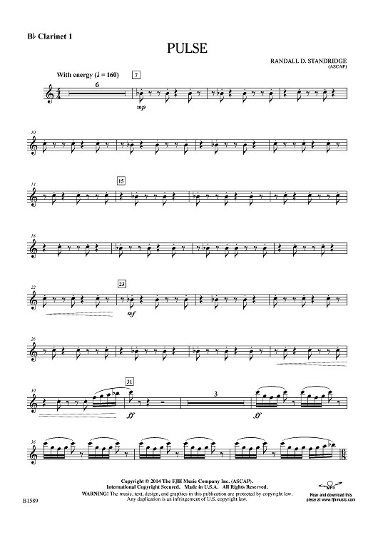 Digital Sheet Music for Pulse - Bb Clarinet 1 by Randall D. Standridge scored for Concert Band; id:445896