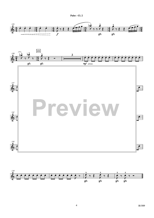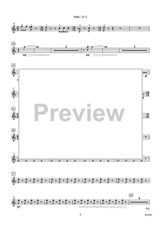 Digital Sheet Music for Pulse - Bb Clarinet 2 by Randall D. Standridge scored for Concert Band; id:445897