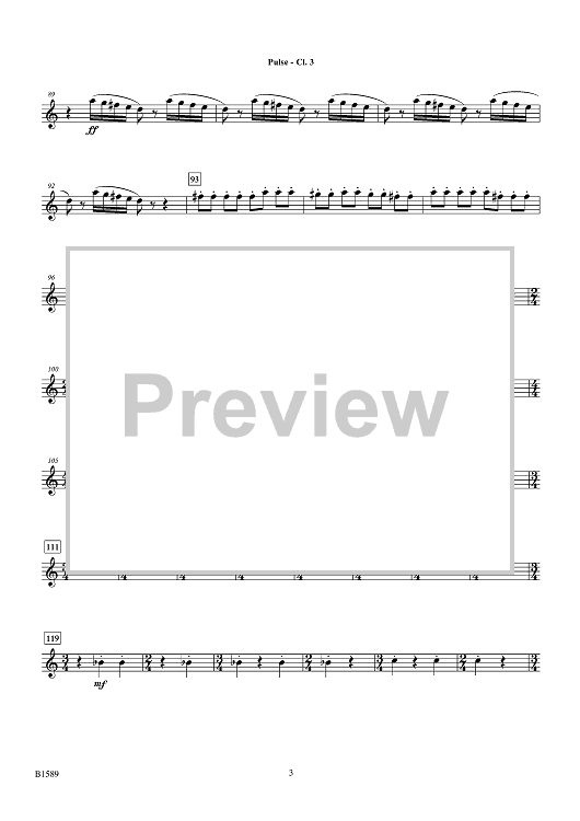 Digital Sheet Music for Pulse - Bb Clarinet 3 by Randall D. Standridge scored for Concert Band; id:445898