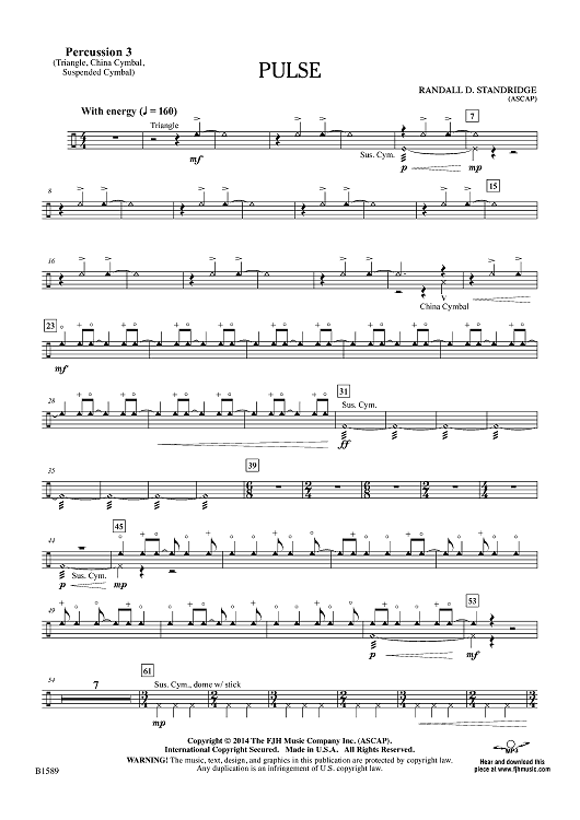 Digital Sheet Music for Pulse - Percussion 3 by Randall D. Standridge scored for Concert Band; id:445921