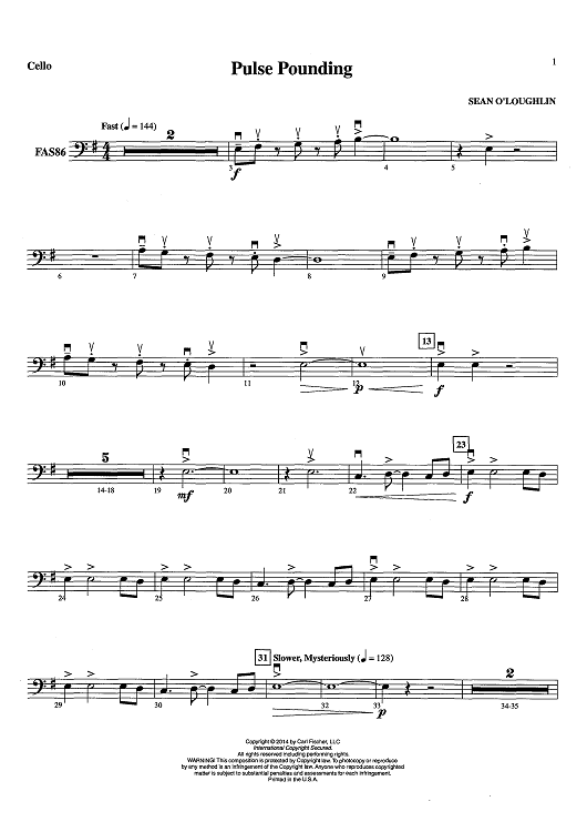 "Pulse Pounding - Cello" Sheet Music by Sean O'Loughlin