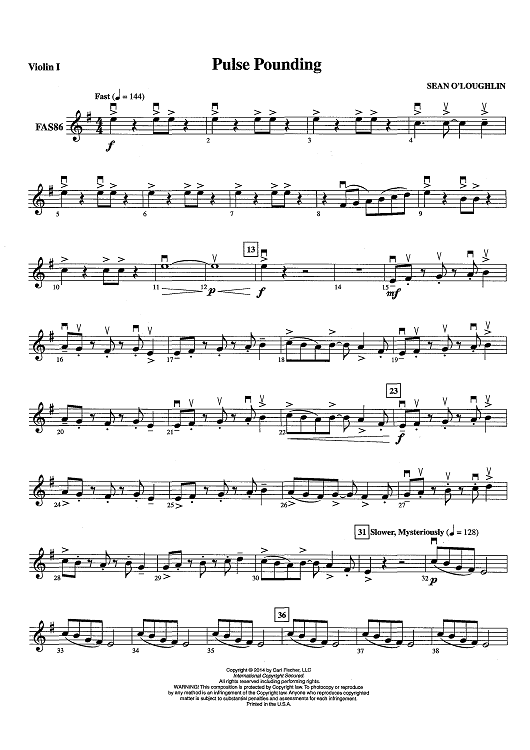 "Pulse Pounding - Violin 1" Sheet Music by Sean O'Loughlin