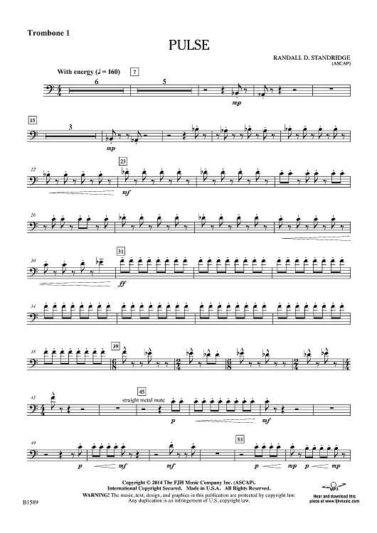 "Pulse - Trombone 1" Sheet Music by Randall D. Standridge