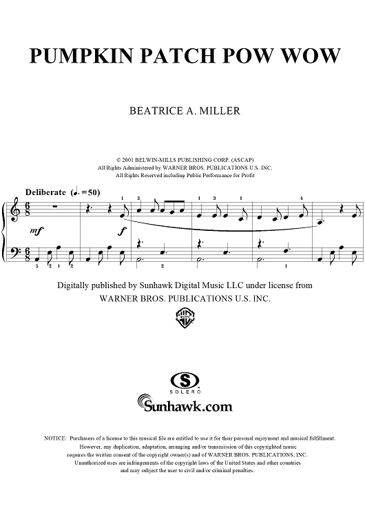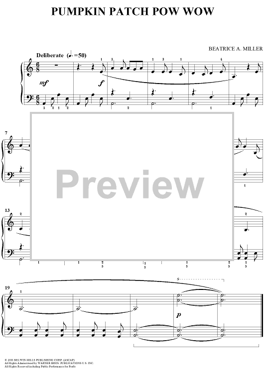 Digital Sheet Music for Pumpkin Patch Pow Wow by Beatrice A. Miller scored for Piano Solo; id:292738