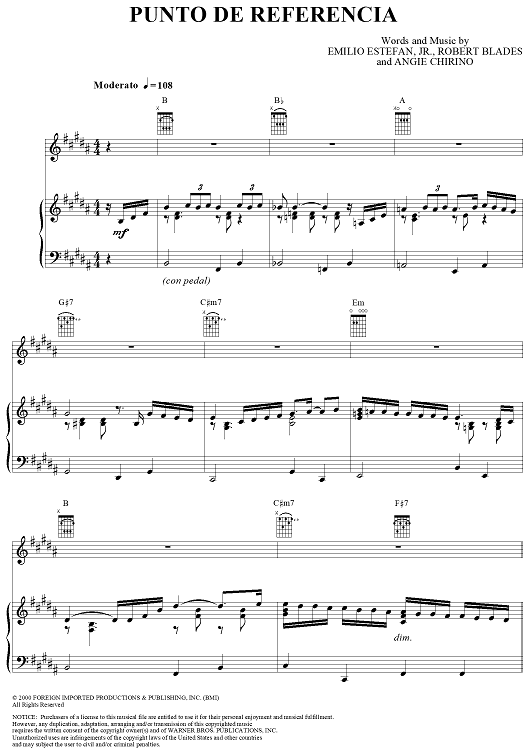 Digital Sheet Music for Punto de Referencia by Gloria Estefan, Robert D. Blades, Angie Chirino, Emilio Estefan Jr. scored for Piano/Vocal/Chords; id:286373