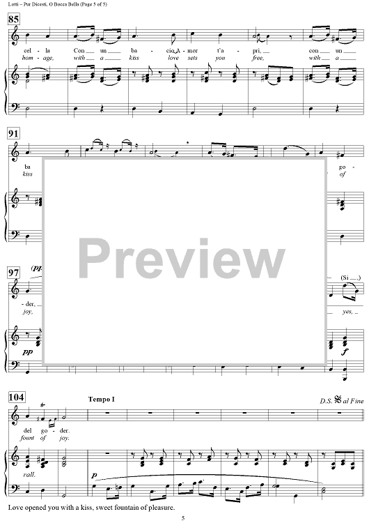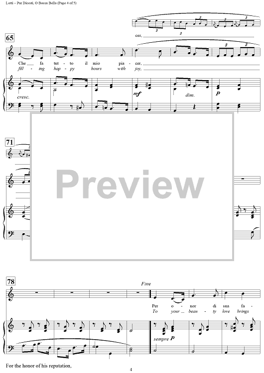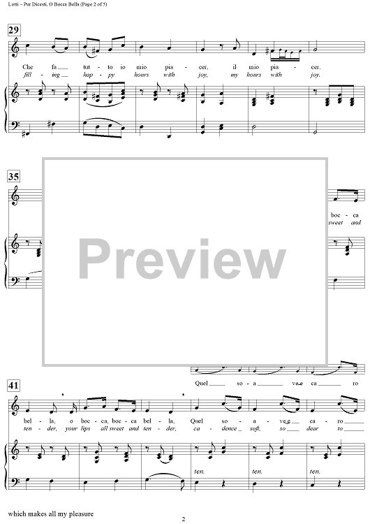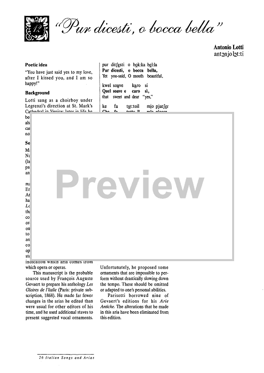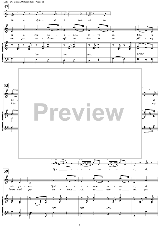 "Pur Dicesti, O Bocca Bella (Gently murmur)" Sheet Music by Antonio Lotti