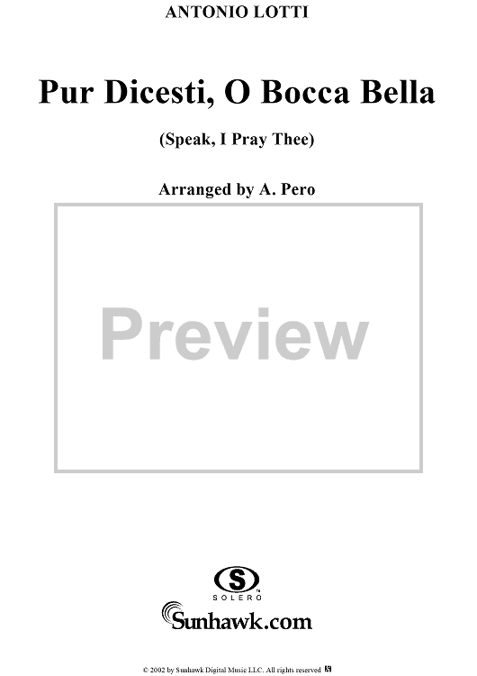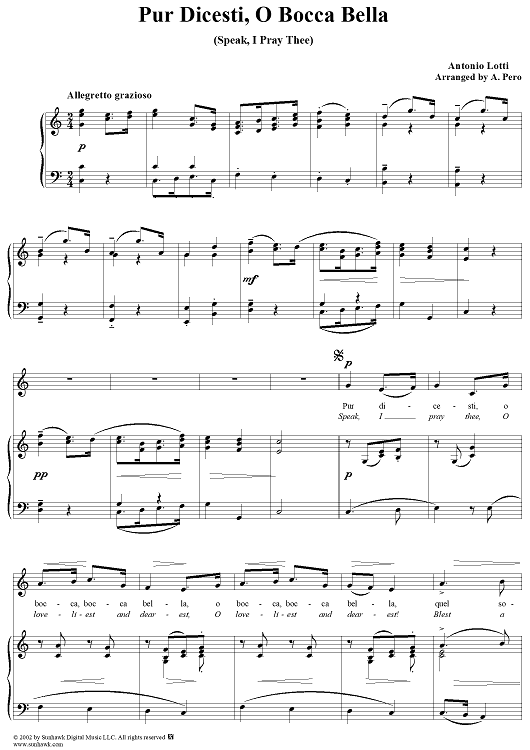 Digital Sheet Music for Pur Dicesti, O Bocca Bella by Antonio Lotti, A. Pero scored for Voice/Piano; id:250833