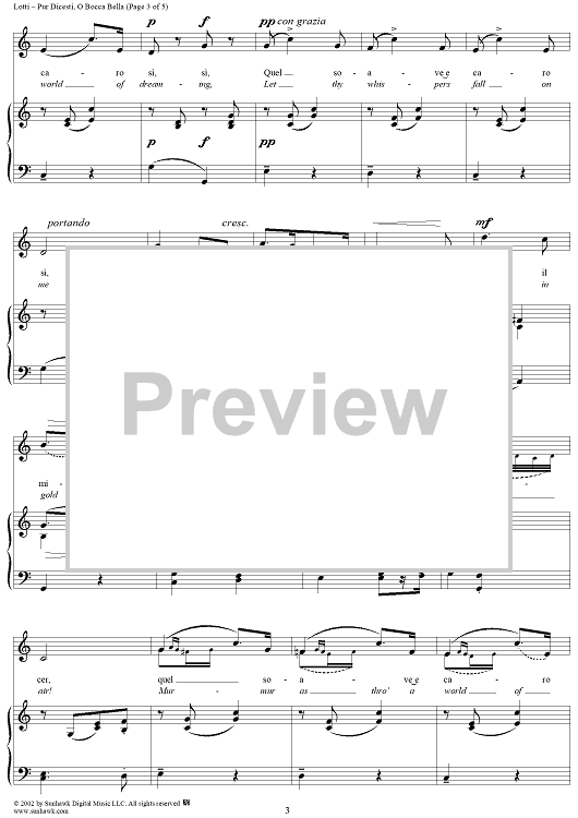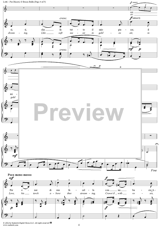 "Pur Dicesti, O Bocca Bella" Sheet Music by Antonio Lotti