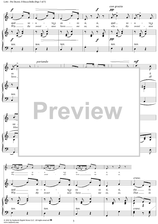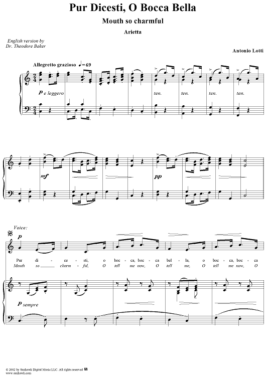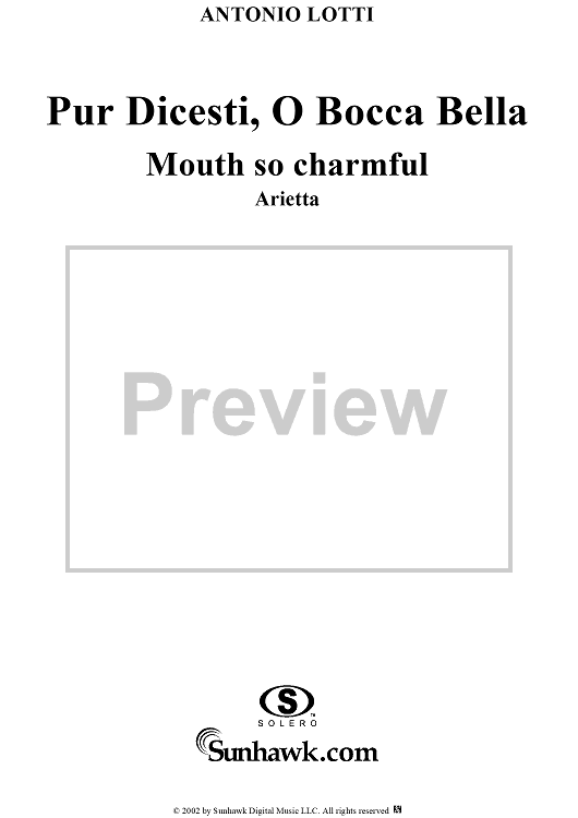 Digital Sheet Music for Pur Dicesti, O Bocca Bella by Antonio Lotti scored for Voice/Piano; id:251074