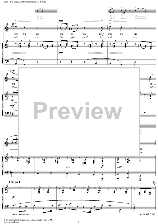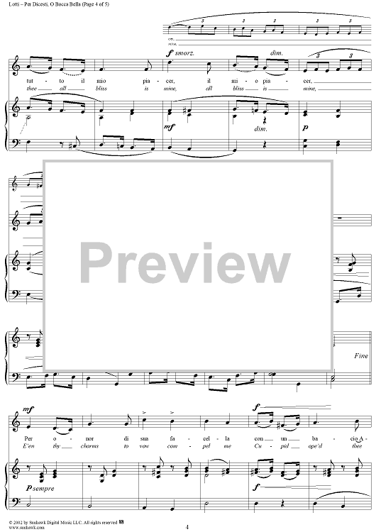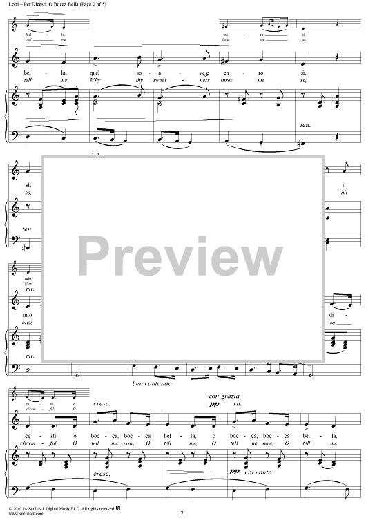 "Pur Dicesti, O Bocca Bella" Sheet Music by Antonio Lotti