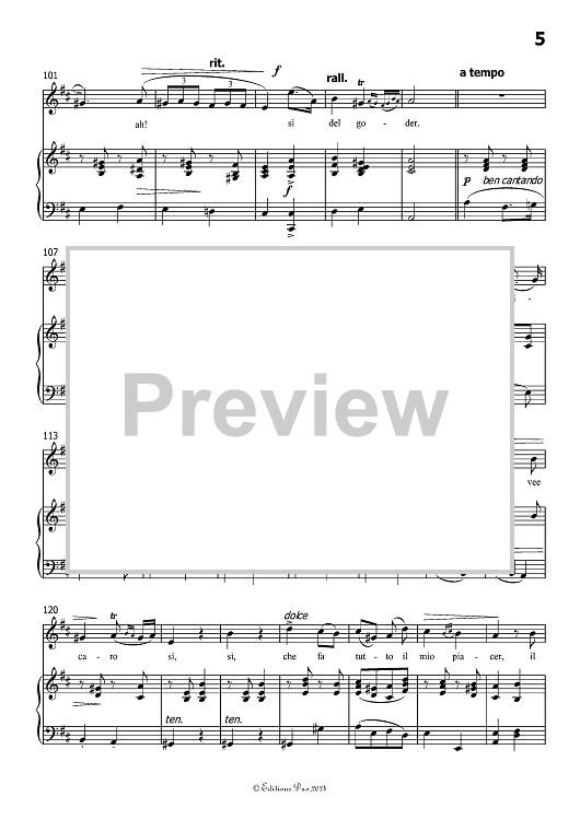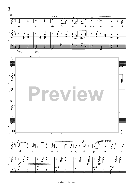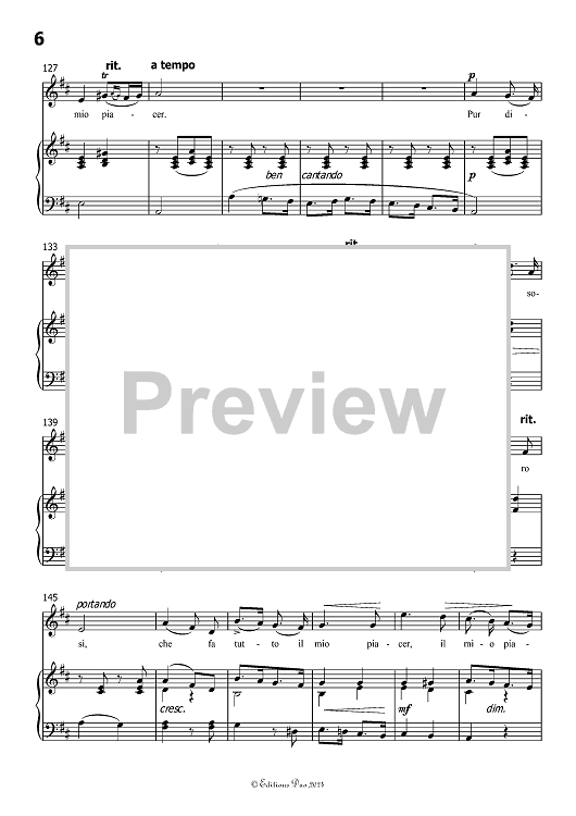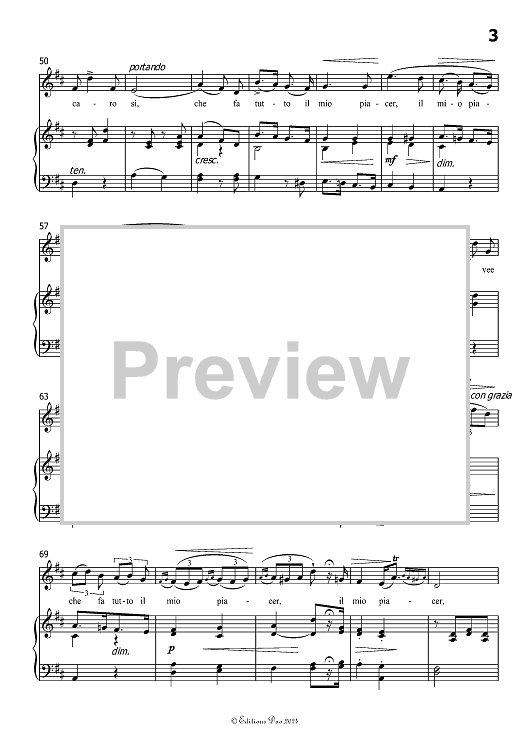 Pur dicesti, o bocca bella, in D Major, for Voice and Piano