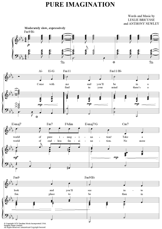 "Pure Imagination" Sheet Music by Leslie Bricusse