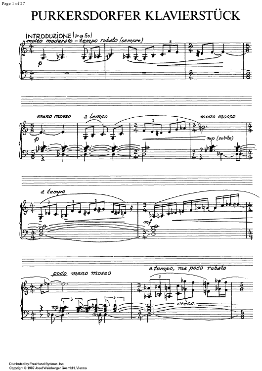 Digital Sheet Music for Purkersdorfer Klavierstück - Piano by , Maximilian Kreuz scored for Piano Solo; id:348332